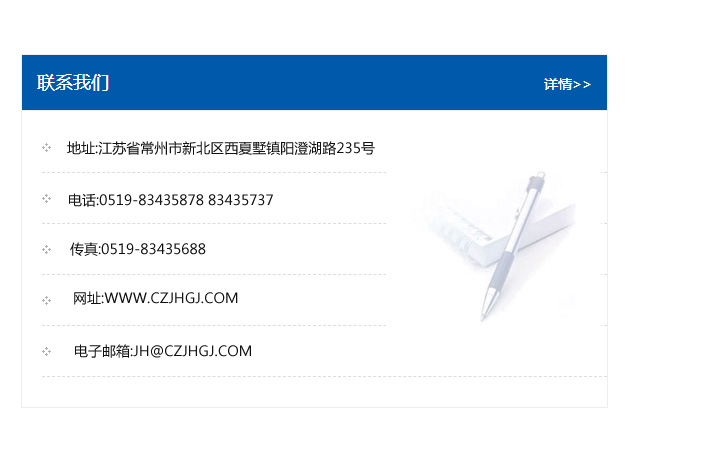 地址:常州市新北區友邦商務大廈1幢16、17層  電話:0519-85101652  傳真:0519-85112595  郵編:213022  網址:www_cz-jiayue_cn.120dhyy.com  郵箱:xiajifengaa@163.com